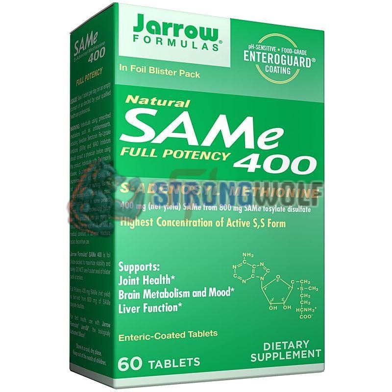 В своей продукции компании Джерроу Формулас использует натуральное сырье премиального качества, имеющее наивысшую биологическую активность благодаря высокой концентрации S, S-формы. Добавка содержит 400 мг чистого вещества из 800 мгдисульфата тозилата SAM-е.