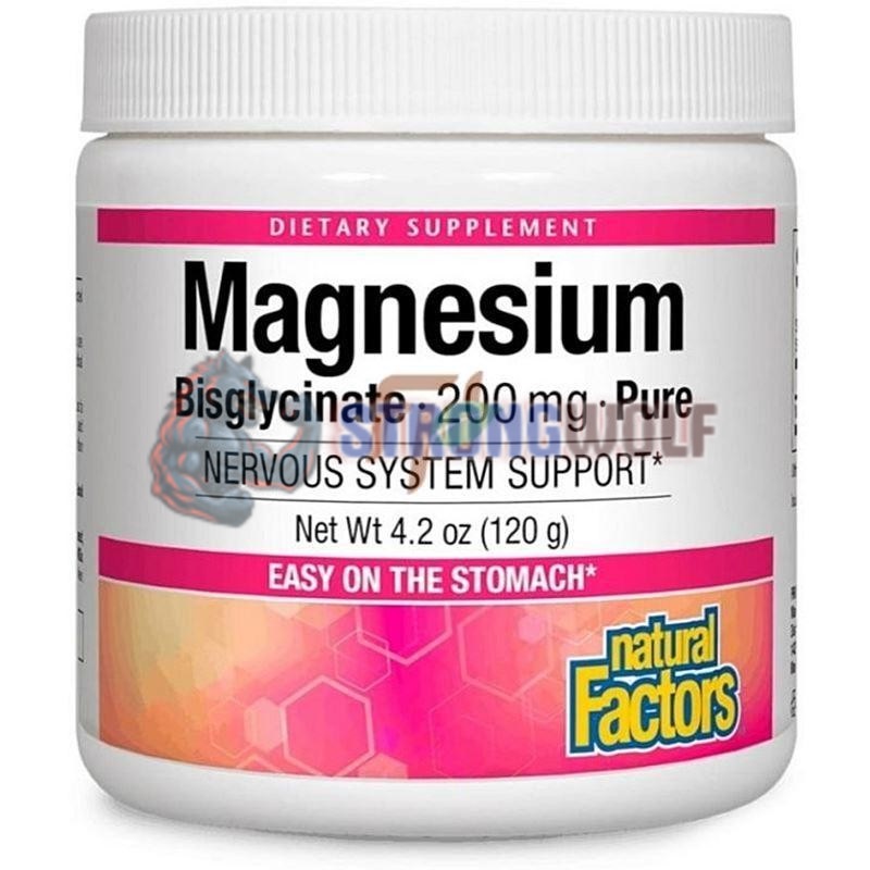Пищевая добавка от канадского бренда Нейчерал Факторс содержит чистый хелатный магний (магния бисглицинат) в форме порошка массой 120 гр (4, 2 OZ. )